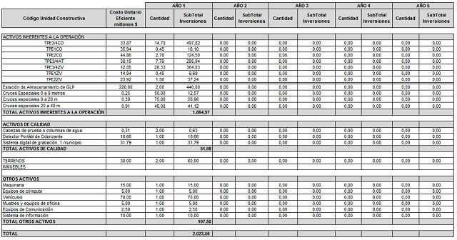 | Activos de distribución de gas | 1.864.974.483 | - | - | - | - |