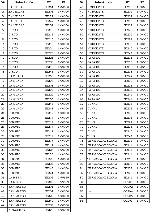 Para cada activo se indica el porcentaje (PU) de la Unidad Constructiva (UC) remunerado al Transmisor mediante cargos por uso.