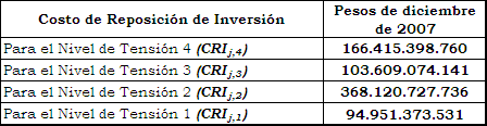 Por lo tanto dentro de esta revisión originada con el recurso de reposición se hace la corrección y se incluye el costo anual de los activos mencionados. Es de anotar que el valor relacionado con el Costo de Reposición de la Inversión del nivel de tensión 4 (variable CRIj,4) sí estaba bien calculado y por eso el número propuesto en esta Resolución difiere en un valor igual al de la unidad N4S45 reconocida en la subestación Mirolindo, del aprobado en la Resolución CREG 112 de 2009.