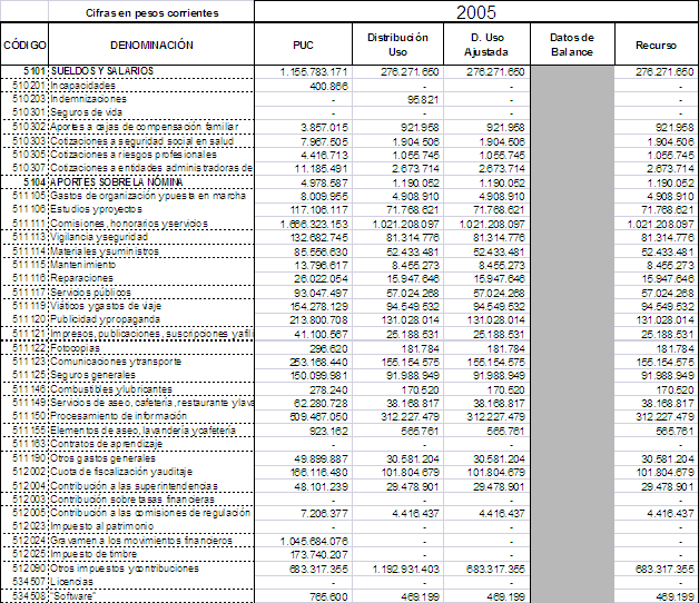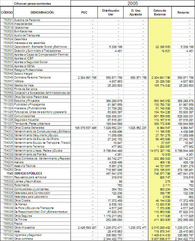 i) En el 2004 y 2005 en la cuenta 751090 (Gastos Generales), se incluyeron las cuentas: 750530, 750547, 750548, 7510, 7511, 7517, 7530, 7540, 7545, 7550, 7560, 7570.