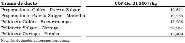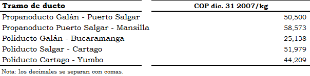 La Comisión de Regulación de Energía y Gas, en su sesión No.444 del 16 de febrero de 2010 aprobó los cargos para el sistema de transporte de GLP de ECOPETROL S.A.