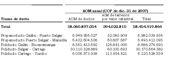 ARTÍCULO 7. GASTOS DE ADMINISTRACIÓN, OPERACIÓN Y MANTENIMIENTO, AOM. De conformidad con lo establecido en el parágrafo 2 del artículo 5o., y en el artículo 8o., de la Resolución CREG 122 de 2008, se reconocen los gastos de AOM presentados en el anexo 4 de la presente Resolución.