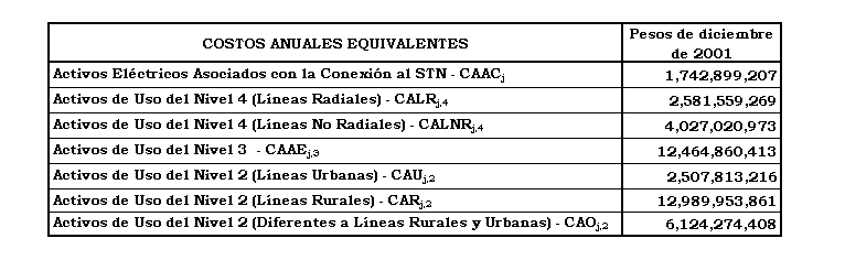 a) Costo Anual para remunerar los activos de conexión al STN y los Niveles de Tensión 4, 3 y 2, sin aplicar los criterios de eficiencia de que trata el Anexo No 8 de la Resolución CREG 082 de 2002: