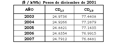 - Cargo de transición para el primer mes de aplicación del Cargo Máximo de Nivel de Tensión 2 aprobado en esta Resolución: 46.6191 $/kWh (pesos de diciembre de 2001).