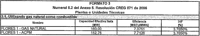 ASUNTO: PUBLICACIÓN DE PARÁMETROS Y LOS ÍNDICES DE COMBUSTIBLE PARA LA DETERMINACIÓN DE LA ENERGÍA FIRME PARA EL CARGO POR CONFIABILIDAD – ENFICC, CORRESPONDIENTE AL PERÍODO 2012-2013, DE LA PLANTA TERMOFLORES 1, POR CAMBIO DE COMBUSTIBLE.