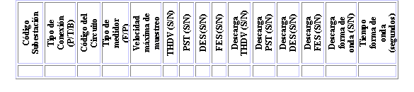 El Operador de Red deberá reportar un registro por cada medidor de calidad de la potencia, teniendo en cuenta el siguiente formato: