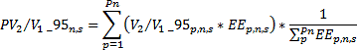 PV2/V1*_95n,s: Promedio ponderado del indicador V2/V1*_95p,n,s en el nivel de tensión n, durante la semana s, respecto a la energía de entrada.