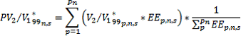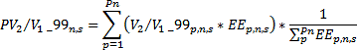 PV2/V1*_99n,s: Promedio ponderado del indicador V2/V1*_99p,n,s en el nivel de tensión n, durante la semana s, respecto a la energía de entrada.
