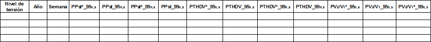 PTHDV*_99n,s: Promedio ponderado del indicador THDV*_99p,n,s en el nivel de tensión n, durante la semana s, respecto a la energía de entrada.
