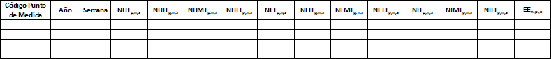 Código Punto de Medida | Código Subestación | Código línea | Nivel de Tensión | Semana de inicio reporte | Año inicio de reporte | Semanas reportadas |