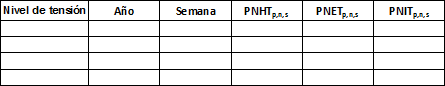 EEp,n,s: Energía de entrada, en kWh, a la barra donde se encuentra el punto de medida p, del nivel de tensión n, durante la semana s.