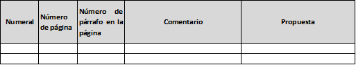 Se recibirán comentarios hasta el 7 de septiembre de 2018 en el correo electrónico creg@creg.gov.co en archivos de medio magnético de Word o Excel y con el formato del siguiente cuadro: