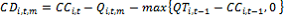 : | Capacidad disponible de compra del distribuidor i, para el periodo de compra t, calculada para el mes m, medida en kilogramos. |