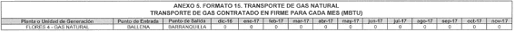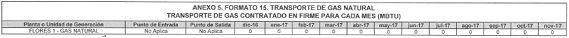 De acuerdo con la información reportada por los productores-comercializadores y los transportadores a la CREG en cumplimiento de las Resoluciones CREG-089 de 2013, se informa que los índices IMM y TCR para la Planta FLORES IV para el período diciembre 2016 a noviembre 2016 tienen un valor de 1.0.