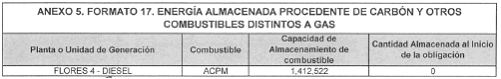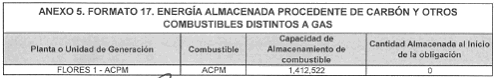 La empresa ZONA FRANCA CELSIA S.A. E.S.P., con fundamento en el Artículo 1 de la Resolución CREG 155 de 2013, optó por la cobertura con combustible alterno para el cubrimiento de las Obligaciones de Energía Firme del Cargo por Confiabilidad asignadas para el período diciembre de 2016 a noviembre de 2017 ante atraso de la infraestructura de regasificación, para las plantas FLORES I y FLORES IV, para lo cual declaró los respectivos parámetros y anexó la verificación de los parámetros por una firma auditora mediante los radicados E-2016-010264, E-2016-010331, E-2016-010343 y E-2016-010349.