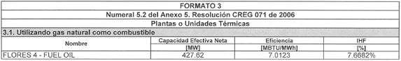 ASUNTO: PUBLICACIÓN DE PARÁMETROS PARA LA DETERMINACIÓN DE LA ENERGÍA FIRME PARA EL CARGO POR CONFIABILIDAD – ENFICC, CORRESPONDIENTE AL PERÍODO 2016-2017, DE LAS PLANTAS FLORES I Y IV, PARA COBERTURA CON COMBUSTIBLE ALTERNO ANTE ATRASO DE INFRAESTRUCTURA DE REGASIFICACIÓN