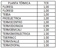 Calculado el índice TCR, teniendo en cuenta la información sobre plantas termoeléctricas declaradas como duales y la sustitución de gas natural por combustibles líquidos, ordenada por la citada Resolución 18 1686 de 2009, se obtuvieron los siguientes resultados: