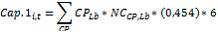 : | Capacidad de envase en cilindros, de acuerdo con la información registrada desde el 2008 hasta octubre de 2012, por AIC proyectos, para cada marca de propiedad del distribuidor i, en el periodo t, medida en kilogramos, definido de la siguiente forma: |