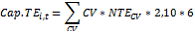 : | Capacidad de envase en cilindros, de acuerdo con la información registrada al SUI desde noviembre de 2012 hasta la fecha, para cada marca de propiedad del distribuidor i en el periodo t, medida en kilogramos, definida de la siguiente forma: |