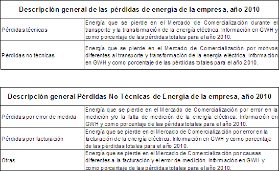 1. ¿Qué tipo de pérdidas de energía se presentan en cada localidad de su mercado relevante y cuál es el valor estimado para cada una de ellas?