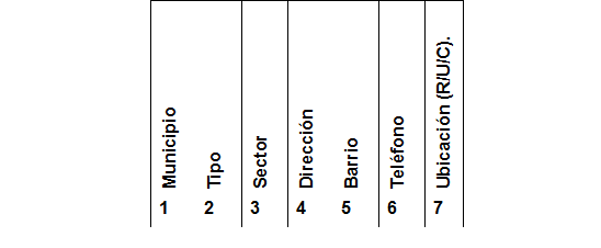 1. Municipio: Corresponde al código asignado al municipio donde se encuentra el usuario, conforme a la codificación dada por el DANE a la división político-administrativa de Colombia, con la siguiente estructura: DDMMM, donde "DD" es el código del departamento y "MMM" corresponde al código del municipio.