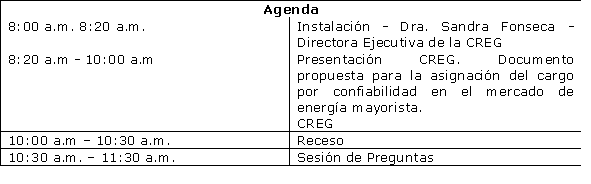 REF.: JORNADA INFORMATIVA SOBRE PROPUESTA PARA LA DETERMINACIÓN Y ASIGNACIÓN DEL CARGO POR CONFIABILIDAD EN EL MERCADO DE ENERGÍA MAYORISTA
