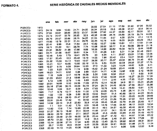 La serie histórica de caudales declarada el 24 de diciembre de 2010 mediante radicado CREG E-2010-012164, numero 1696047 de EPM, es la siguiente: