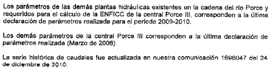La empresa EPM E.S.P., con base en el concepto CREG S-2010-005437 que se fundamentó en las anteriores normas, presentó los parámetros que se anexan para el cálculo de la Energía Firme, ENFICC, para Planta Porce III Unidades 3 y 4 con el fin de ofertar su energía el mercado secundario.