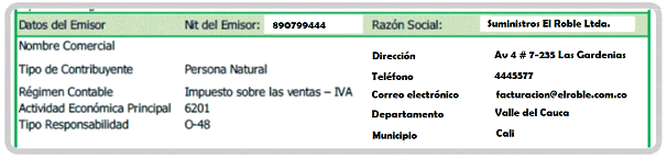 Ilustración 3. Datos del emisor en la factura electrónica, ND y NC.