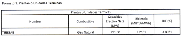 ASUNTO: PUBLICACIÓN DE PARÁMETROS CORRESPONDIENTES AL PERÍODO DICIEMBRE DE 2017 A NOVIEMBRE DE 2018, DE LA CENTRAL TEBSA PARA VERIFICACIÓN DE LA ENERGÍA DISPONIBLE ADICIONAL (EDAPTM) CON DESTINO AL MERCADO SECUNDARIO