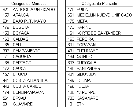 2. Mercado: Es el código del mercado de comercialización donde se efectuó la venta que se está facturando, y conforme a los siguientes códigos: