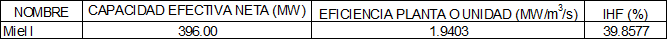 La empresa ISAGEN S.A. E.S.P. mediante comunicación con radicado E-2012-010721 y E-2012-010768, presentó los parámetros que se anexan para el cálculo de la Energía Firme, ENFICC, para la Central Miel I Guarinó.