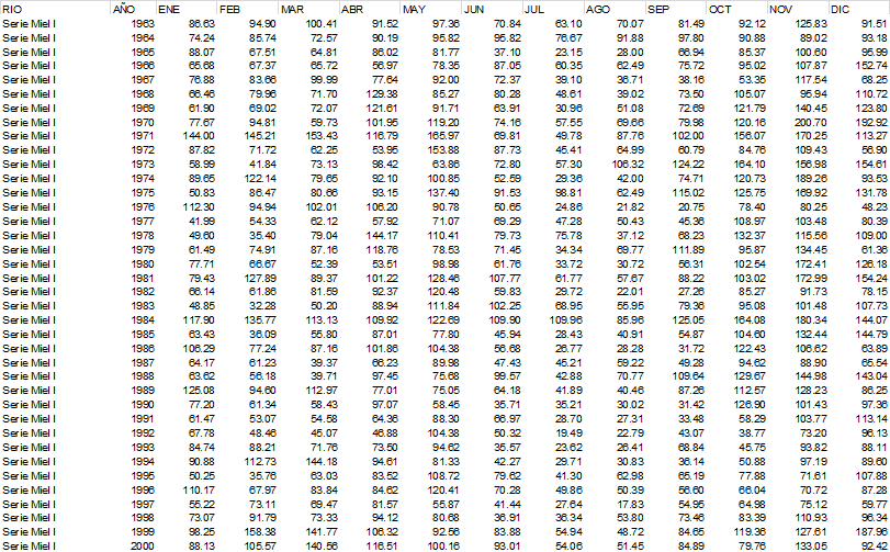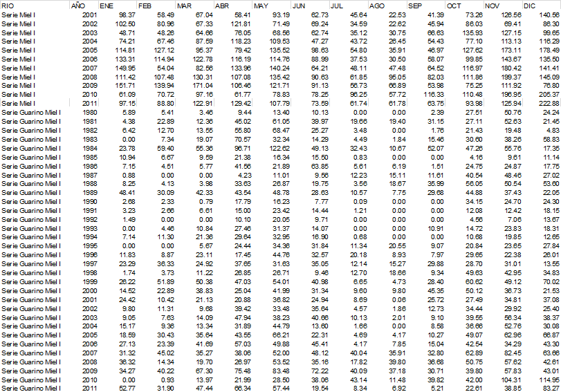 Formato 4. Series Históricas de Caudales Medios Mensuales