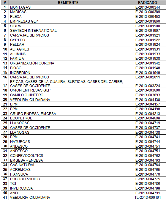 La Resolución CREG 090 de 2012, en su artículo 2, estableció el plazo para la presentación de comentarios, observaciones y sugerencias a la propuesta de remuneración de la actividad de distribución de gas combustible por redes de tubería, el cual fue ampliado mediante la circular CREG 019 de 2013 hasta el 31 de mayo de 2013. Así mismo, en este artículo se determinó que los comentarios a la CREG debían ser enviados en medio físico y en medio magnético en archivo de texto.
