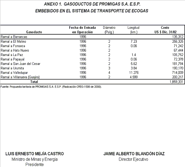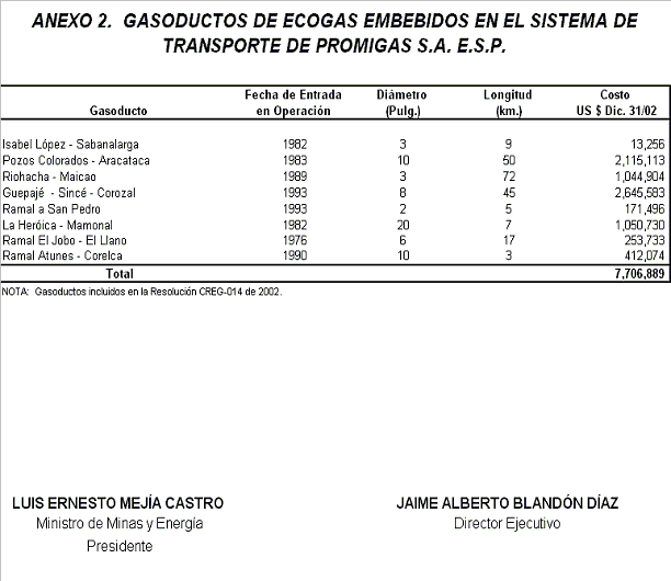 Por la cual se establecen los Cargos Regulados para el Sistema de Transporte de ECOGAS.