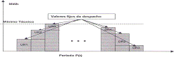 2. Cada agente gráfica las condiciones de arranque y parada de sus unidades de generación térmica, por medio de curvas de Potencia de Generación (MW) vs. Tiempo (horas).
