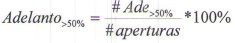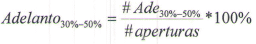 | Número de aperturas con adelanto entre el 30% y el 50 %. | |