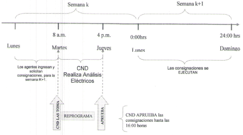 De acuerdo con lo establecido en la Resolución CREG 065 de 2000, se establece el procedimiento para la Programación Semanal de Consignaciones así: