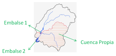 - Caudal de cuenca propia: es el caudal natural producido en la cuenca existente entre estructuras de desviación o sitios de interés dispuestos en cadena.