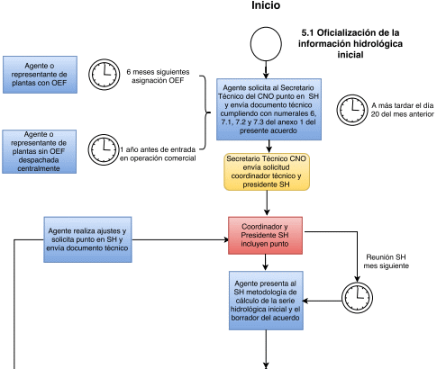 El Secretario Técnico del CNO remite la anterior solicitud al Presidente y al Coordinador Técnico del SH para que el tema sea incluido en la agenda de la reunión ordinaria del SH del mes siguiente. Una vez el tema ha sido incluido en la agenda de reunión, el agente recibirá la citación a la reunión del SH para presentar para aprobación del SH la metodología de cálculo de la serie hidrológica inicial.