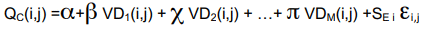 VDk(i,j): Información disponible en la EP de medida k usada como una de las variables independientes (o su logaritmo si se adopta hipótesis de lognormalidad), en el mes i del año j, siendo k=1; 2; M (k>1 cuando se utiliza más de una EP; regresión múltiple).
