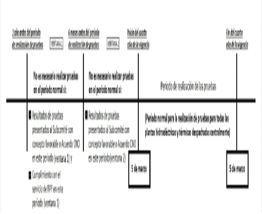 El periodo de realización de las pruebas de estatismo y banda muerta y de presentación de los resultados al Subcomité de Controles es de 1 año, que da inicio al comienzo del cuarto año de la vigencia.