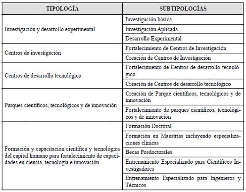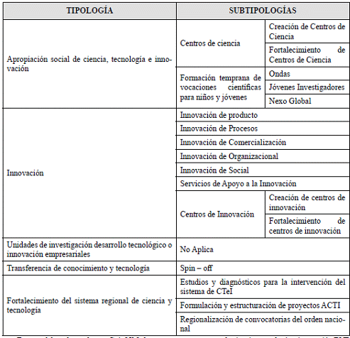 36. Estas tipologías se encuentran detalladas en la Guía Sectorial número 2 de Programas y Proyectos de Ciencia, Tecnología e Innovación.