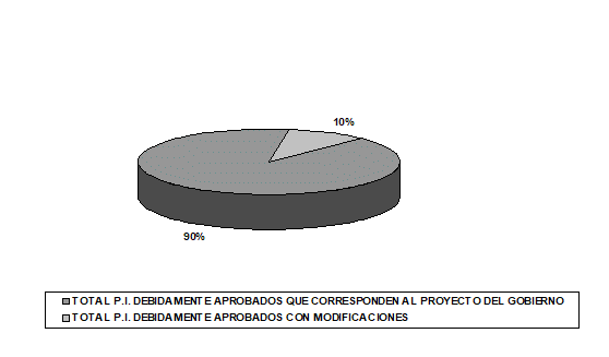| TOTAL P.I DEL PROYECTO DEL GOBIERNO ACOGIDOS CON MODIFICACIONES IMPORTANTES | 6<=1+2+2+1> |