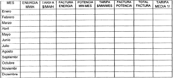 La Comisión de Regulación de Energía y Gas viene comparando el actual esquema de compra al sistema interconectado con el utilizado en años anteriores. En consecuencia, agradeceríamos que a la mayor brevedad nos diligencien el siguiente cuadro: