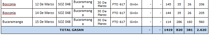 En respuesta a la anterior disposición regulatoria, la empresa GAS DE SANTANDER S.A. E.S.P., que realiza las actividades de distribución y comercialización minorista en el Departamento del Santander, mediante comunicaciones con número de radicados CREG E-2016-001355 y E-2016-001664, informó la cantidad de cilindros universales remanentes en su poder y la programación de movilización y destrucción de los mismos.