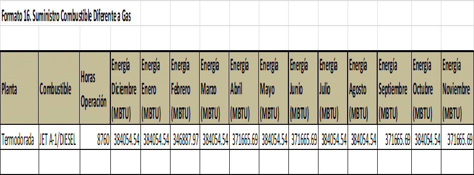 De acuerdo con lo definido en la Resolución CREG 071 de 2006 los índices IMM de combustibles diferentes a gas natural es uno (1) y el índice TCR para combustibles diferentes a gas natural no aplica, sino que se define que Índice de Disponibilidad de Transporte (IDT) es uno (1.0). Por tanto, el índice IMM y IDT para la Planta TERMODORADA para el período comprendido entre el 1 de diciembre de 2012 y el 30 de noviembre de 2013 es de uno (1.0).