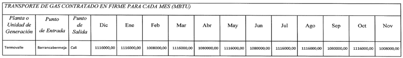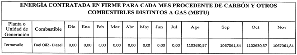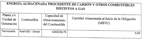 La empresa TERMOVALLE S.C.A. E.S.P., con fundamento en el artículo 12 de la Resolución CREG-085 de 2007, optó por cambio de combustible para cumplir las Obligaciones de Energía Firme del Cargo por Confiabilidad asignadas para el período comprendido entre diciembre 1 de 2013 a noviembre 30 de 2014, respaldadas con la Planta TERMOVALLE, para lo cual declaró los respectivos parámetros y anexó la verificación de los parámetros por una firma auditora mediante el radicado CREG E-2013-008703.