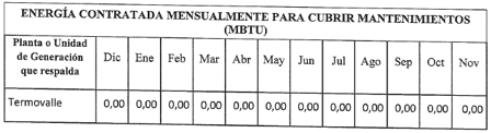 Formato 18. Energía contratada para cubrir mantenimientos.