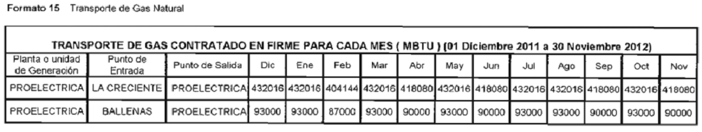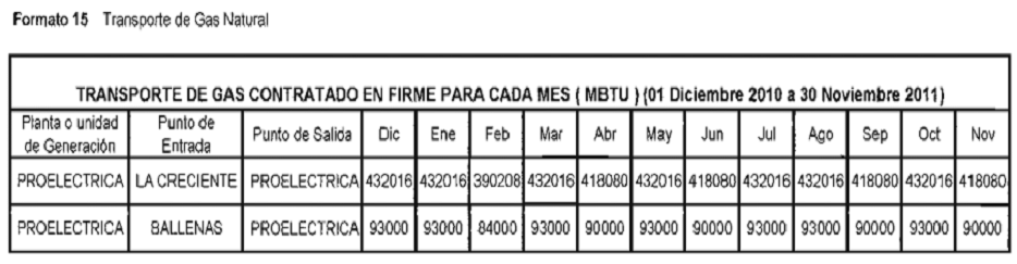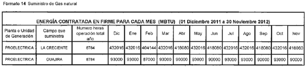 De acuerdo con la información reportada por los productores-comercializadores, utilizada para la Circular CREG-045 y 052 de 2009, la actualización reportado por ECOPETROL (radicado E-2009-010392), la información reportada por el transportador PROMIGAS S.A. E.S.P. (radicado E-2009-012008) y las resoluciones 181654, 181686 y 16 1739 de 2009 expedidas por el Ministerio de Minas y Energía, se informa que los índices IMM y TCR para la Planta PROELECTRICA, correspondiente a los períodos comprendido entre el 1 de diciembre de 2010 y el 30 de noviembre de 2011 y el 1 de diciembre de 2011 y el 30 de noviembre de 2012, calculados en la forma prevista en la Resolución CREG-071 de 2006, arrojan un valor de 1.0.